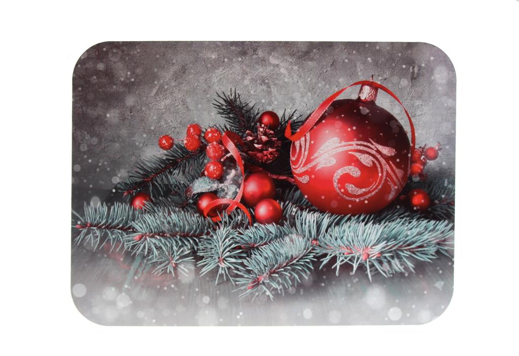 Mata stołowa 40x30 cm CZERWONA BOMBKA - SREBRNY ŚWIERK