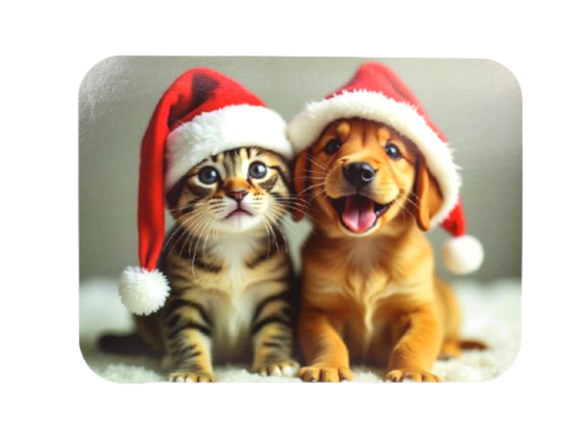 Mata stołowa 40x30 cm KOT I PIES W CZAPCE MIKOŁAJA