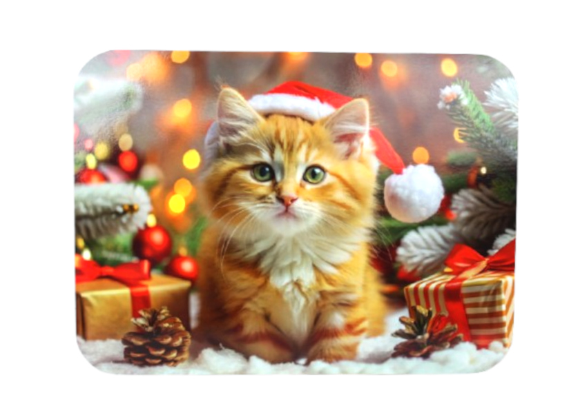 Mata stołowa 40x30 cm RUDY KOT W CZAPCE MIKOŁAJA