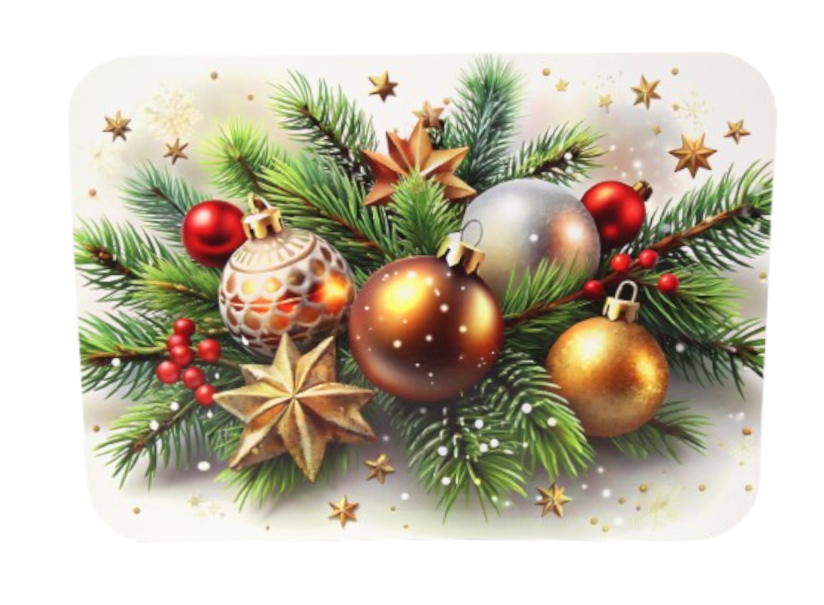 Mata stołowa 40x30 cm STROIK ŚWIĄTECZNY - BOMBKI GWIAZDY ŚWIERK