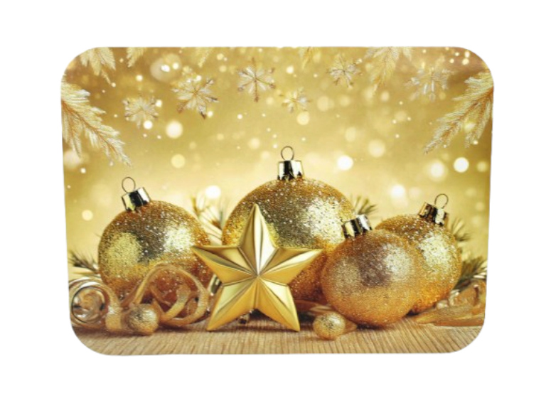 Mata stołowa 40x30 cm ZŁOTE BROKATOWE BOMBKI Z GWIAZDĄ