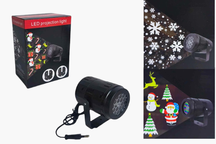 typ światła LED RGBzasilanie AC 100 - 240V / 50-60 Hzzasięg projekcji do 8-10 meterówautomatyczna zmiana kolorów i wzorówdo użytku wewnętrznego i zewnętrznego
