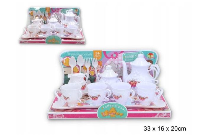 4 łyżeczki, 4 widelczykidzbanuszek, cukiernica, czajniczektaca, 2 spodki, 4 filiżanki