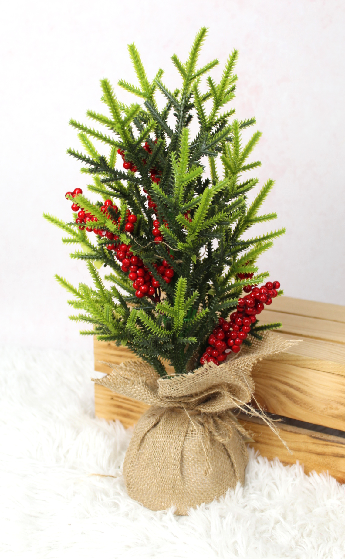 Drzewko z jarzębiną w jucie wys. 40 cm - zielony