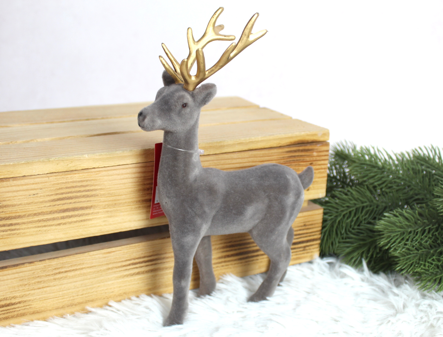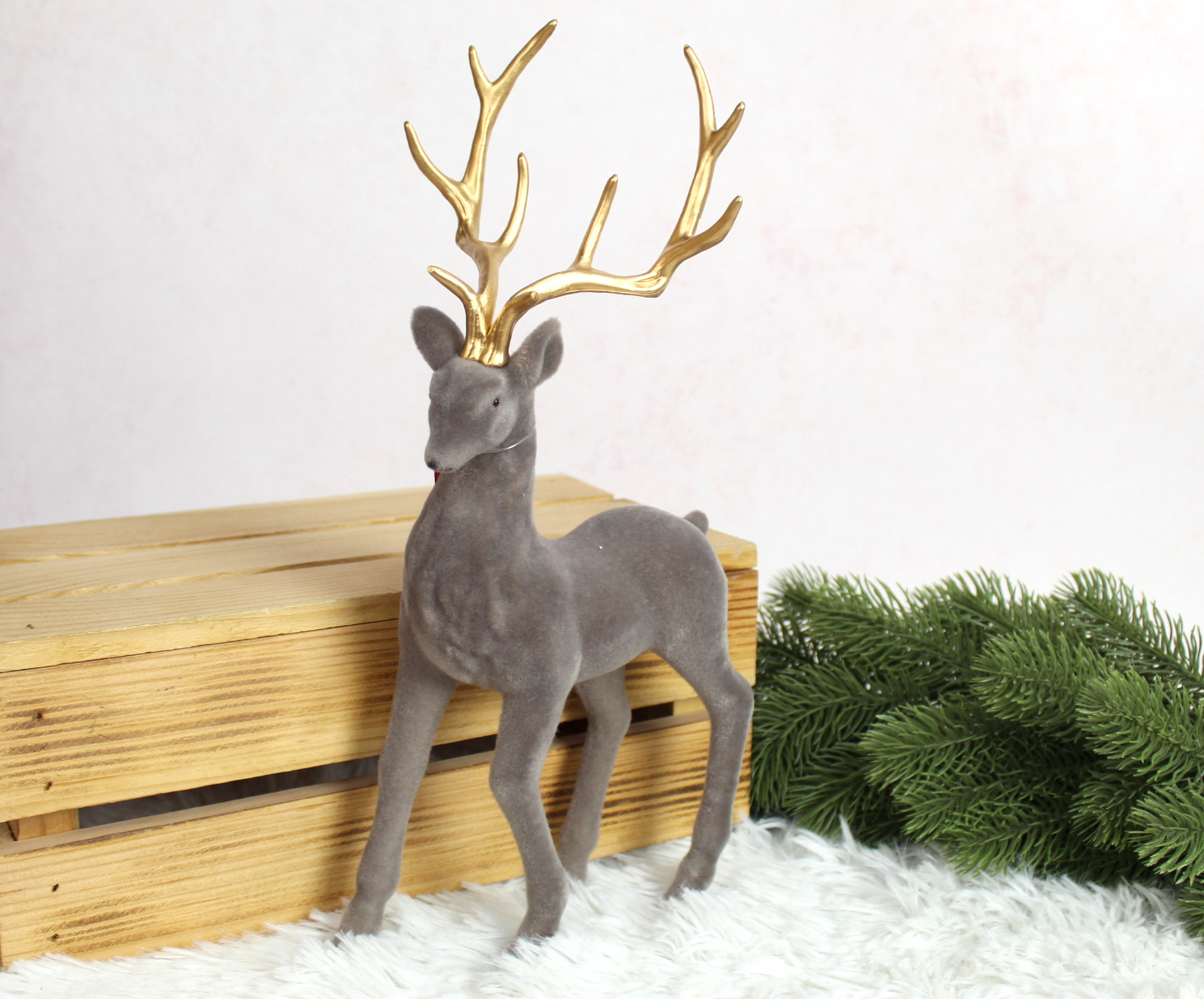 Renifer plastikowy, flokowany 35x15x12 cm - SZARY