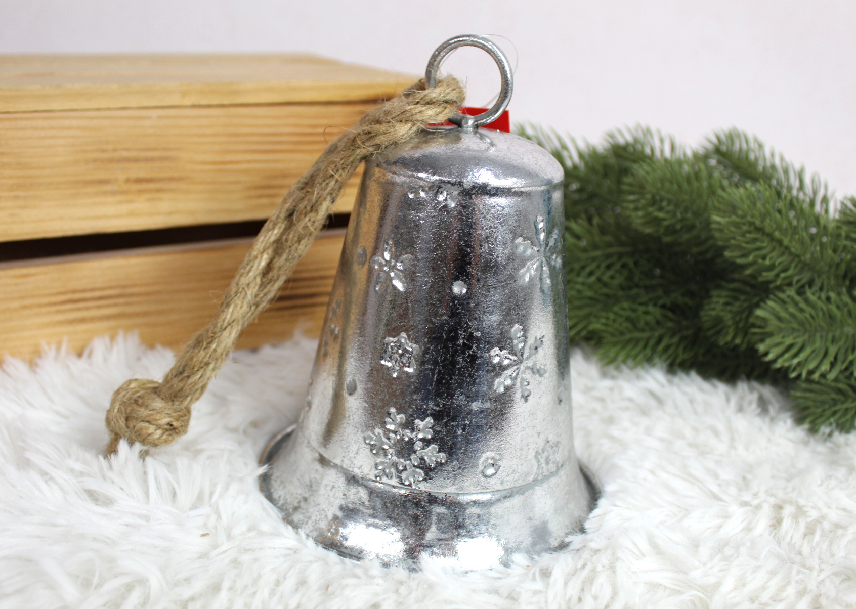 Zawieszka metalowa DZWONEK 16x13 cm SREBRNY z wzorem