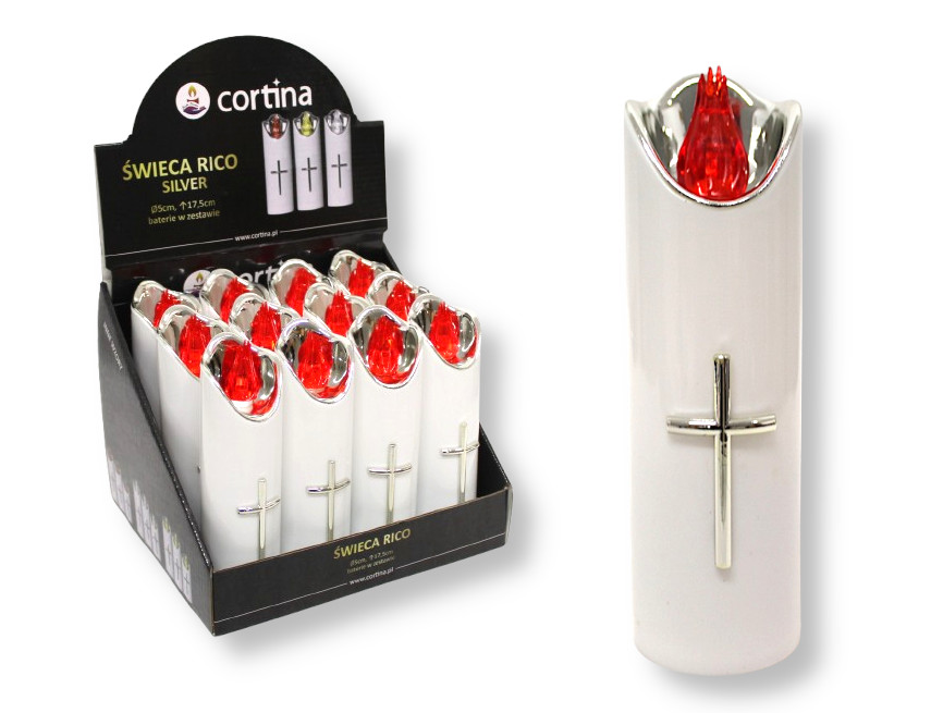 Świeca LED RICO 12,5x5 cm Biało-srebrna z transparentnym płomieniem - 1 szt