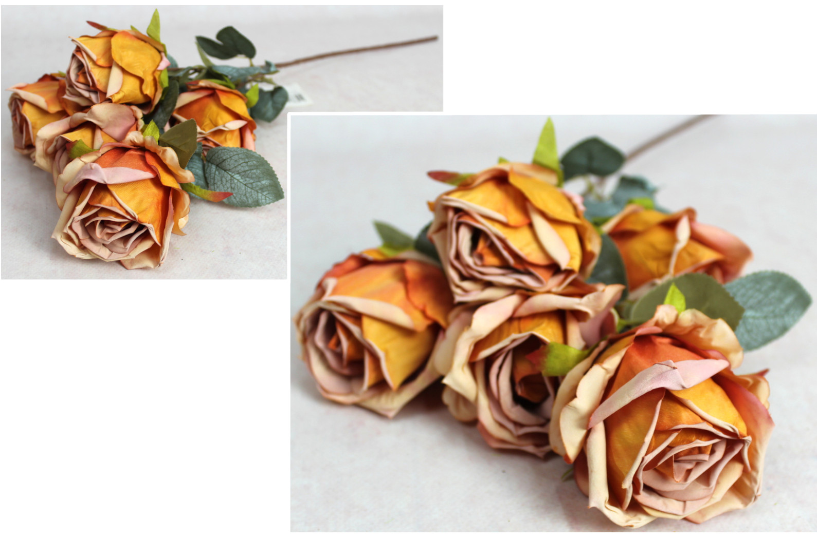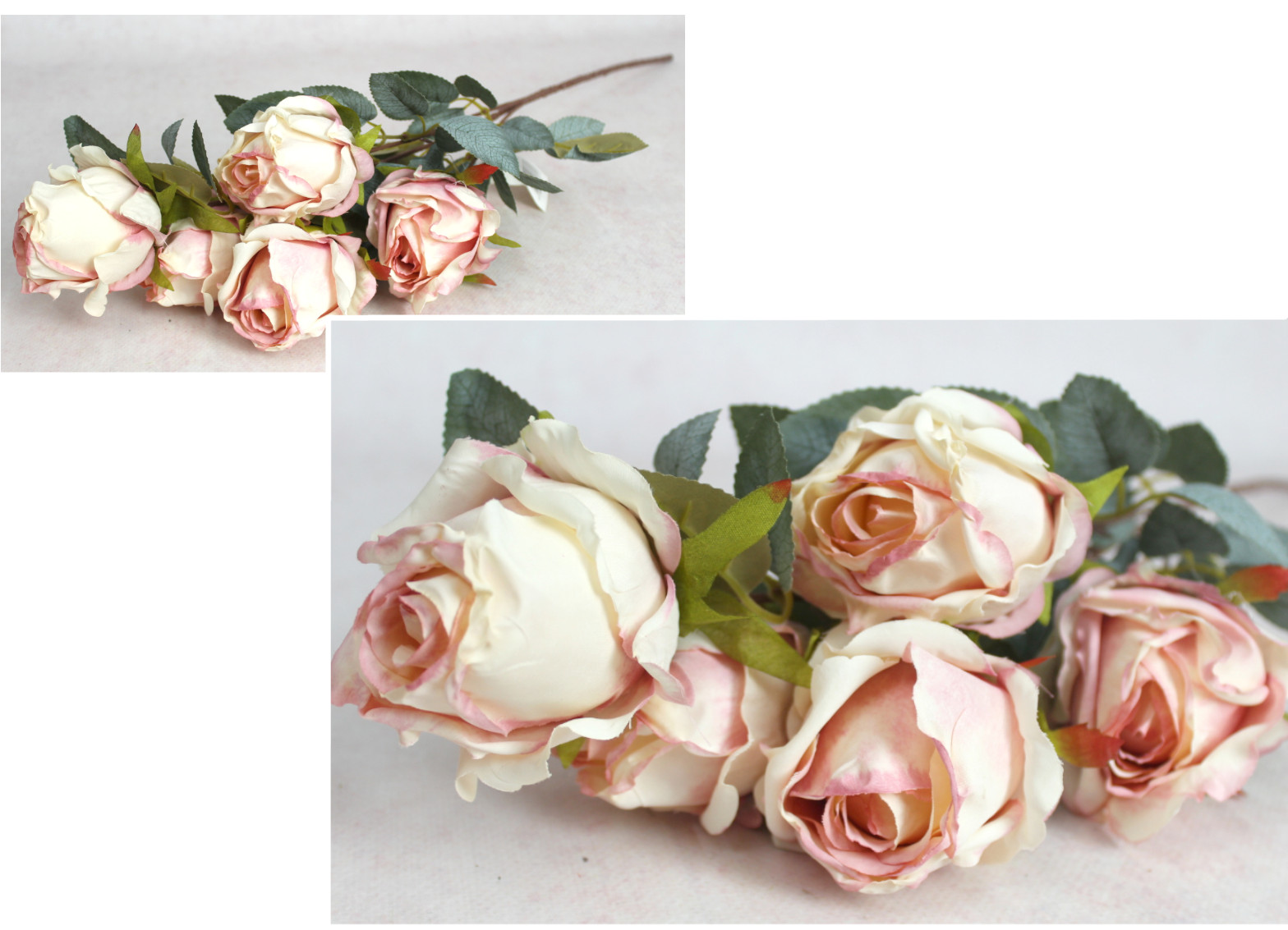 Kwiat RÓŻA wys. 62 cm (5 kwiatów 4x6,5 cm) szary liść RÓŻOWA