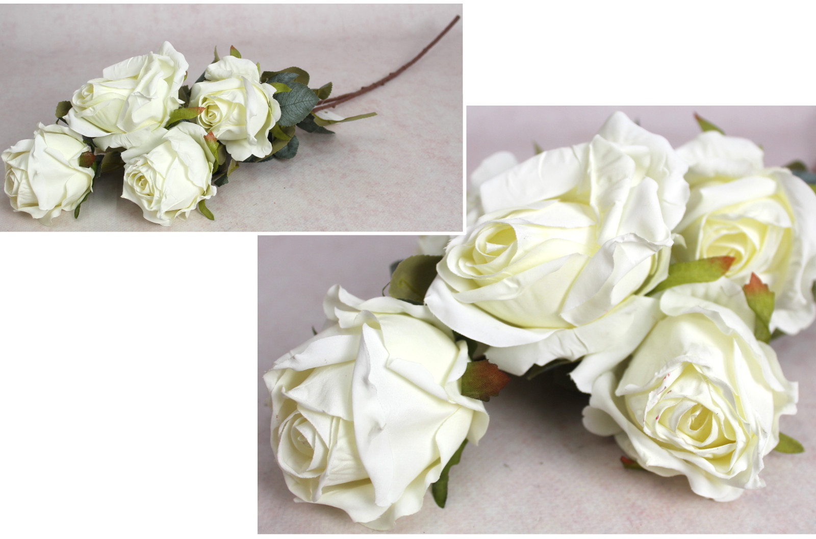 Kwiat RÓŻA wys. 62 cm (5 kwiatów 4x6,5 cm) szary liść BIAŁA