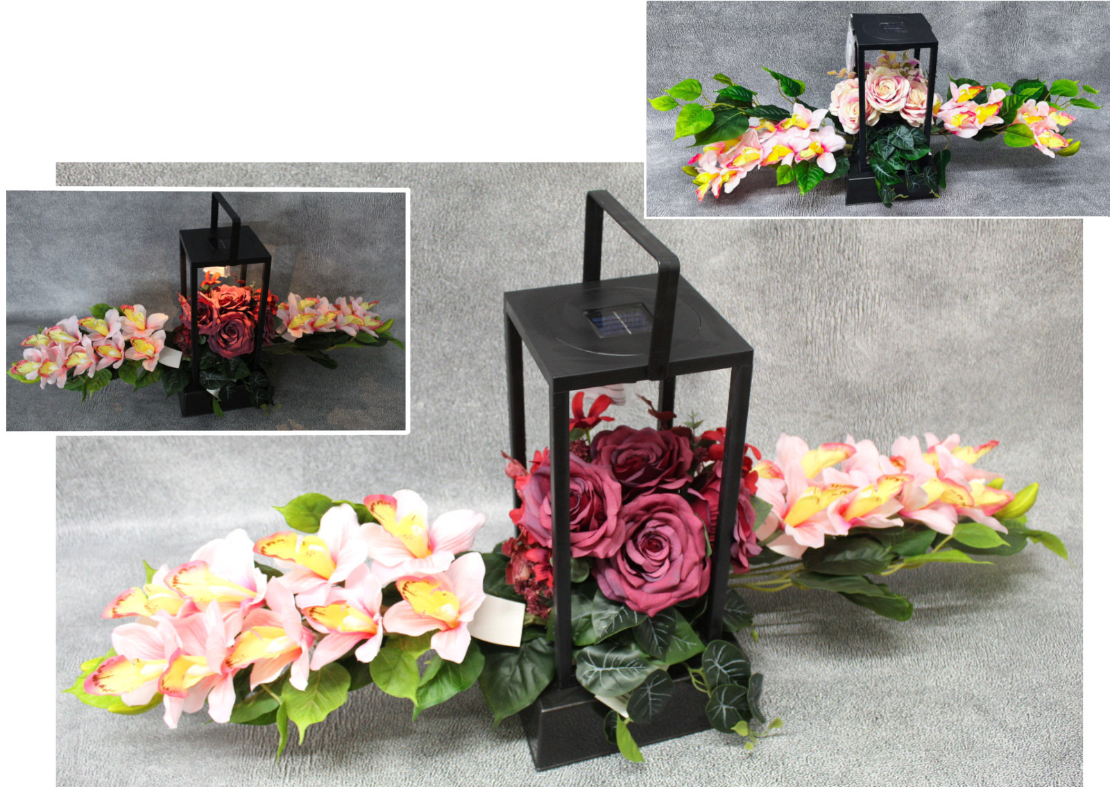 Stroik zalewany LATARNIA MAŁA SOLAR storczyki, kalie, bluszcz MIX KOLOR (37x15x15 cm + 105 cm) ok. 2,42 kg