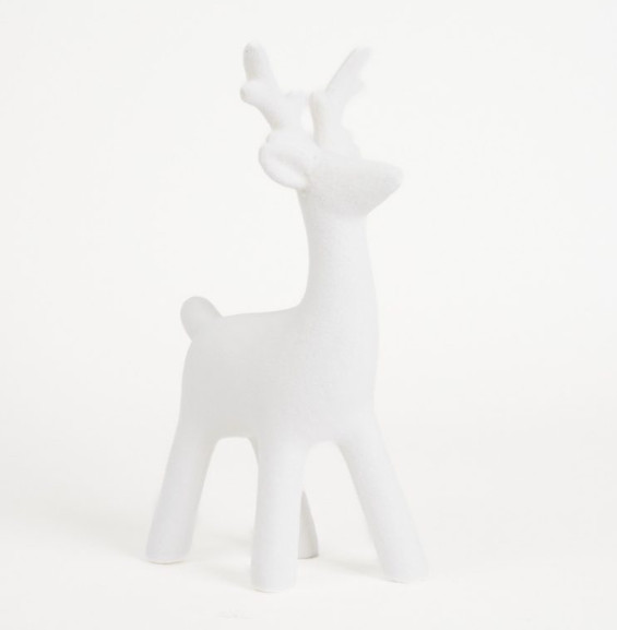 Figurka plastikowa JELEŃ flokowany 30,5 cm BIAŁY