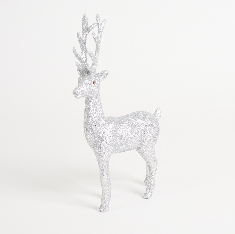 Figurka plastikowa JELEŃ w brokacie 29 cm SREBRNY