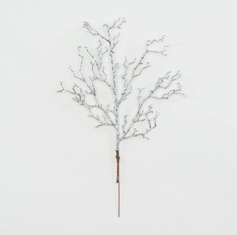 Gałązka brokat 30 cm SREBRNA - 1 szt
