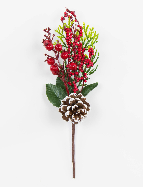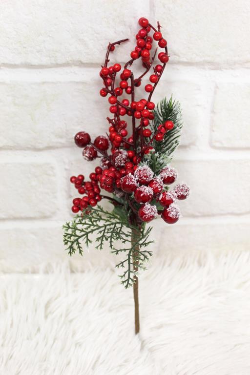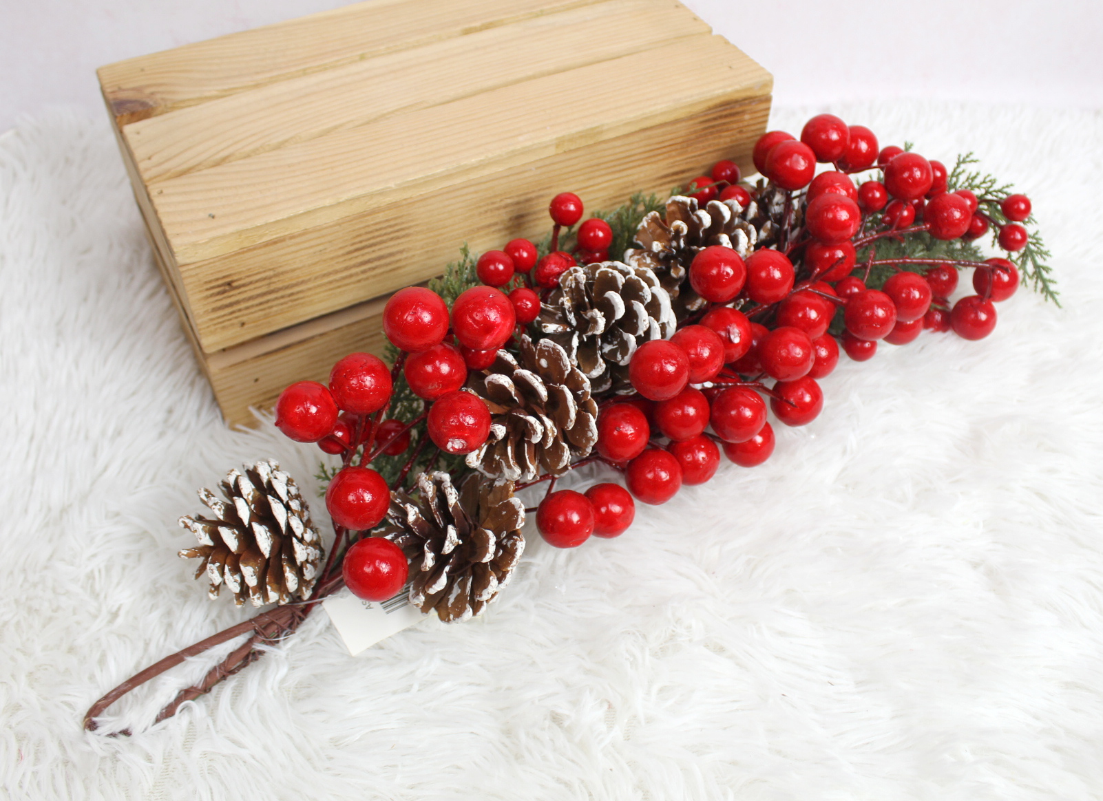 Gałązka z szyszką i czerwonymi kulkami 28 cm - 1 szt
