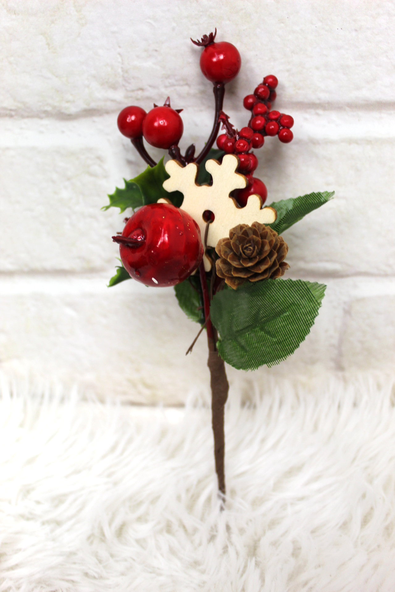 Gałązka świąteczna z drewnianym płatkiem śniegu 20 cm - 1 szt