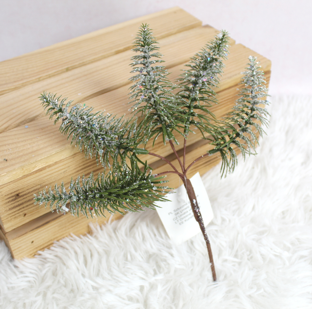 Gałązka ŚWIERK wys. 23 cm ZIELONA z brokatem