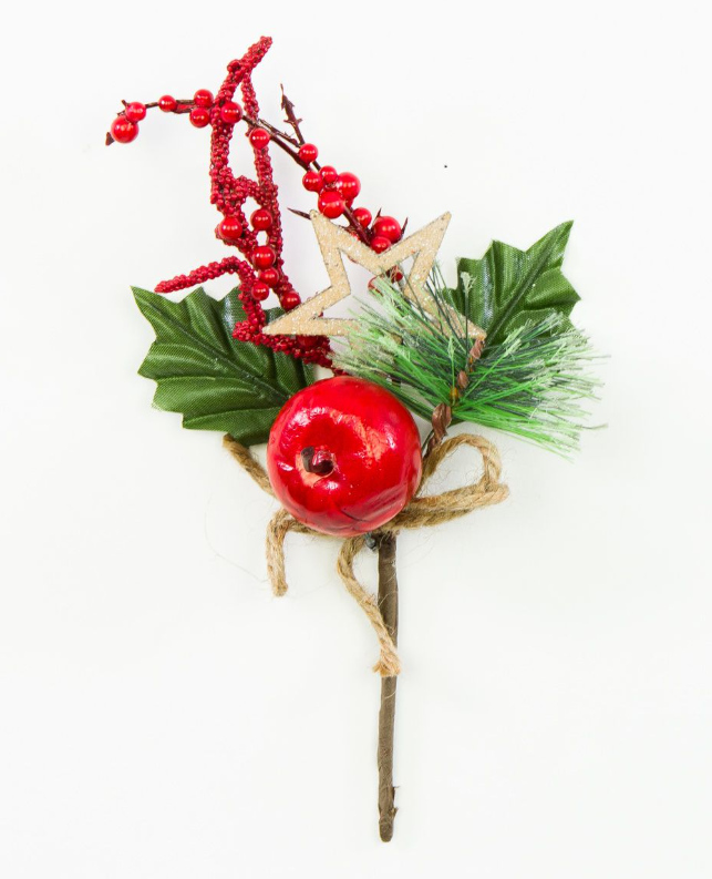 Gałązka z jabłkiem, gwiazdą i kulkami 26 cm - 1 szt
