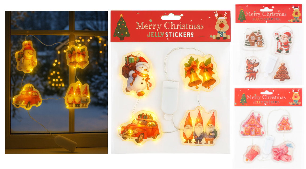 Lampki dekoracyjne naklejki świetlne na okno, witrynę sklepową, żelowe, bezklejowe 4 LED - mix