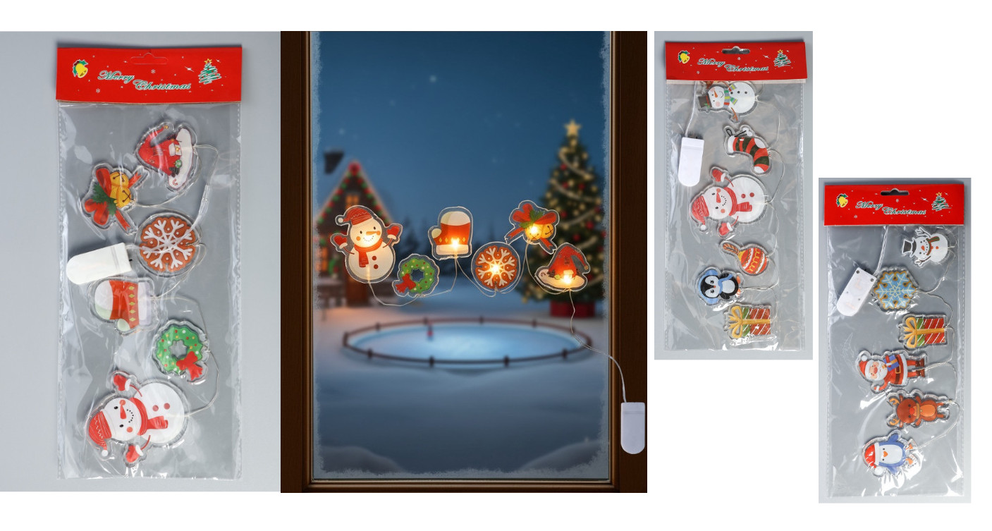 Lampki dekoracyjne naklejki świetlne na okno, witrynę sklepową, żelowe, bezklejowe 6 LED - mix