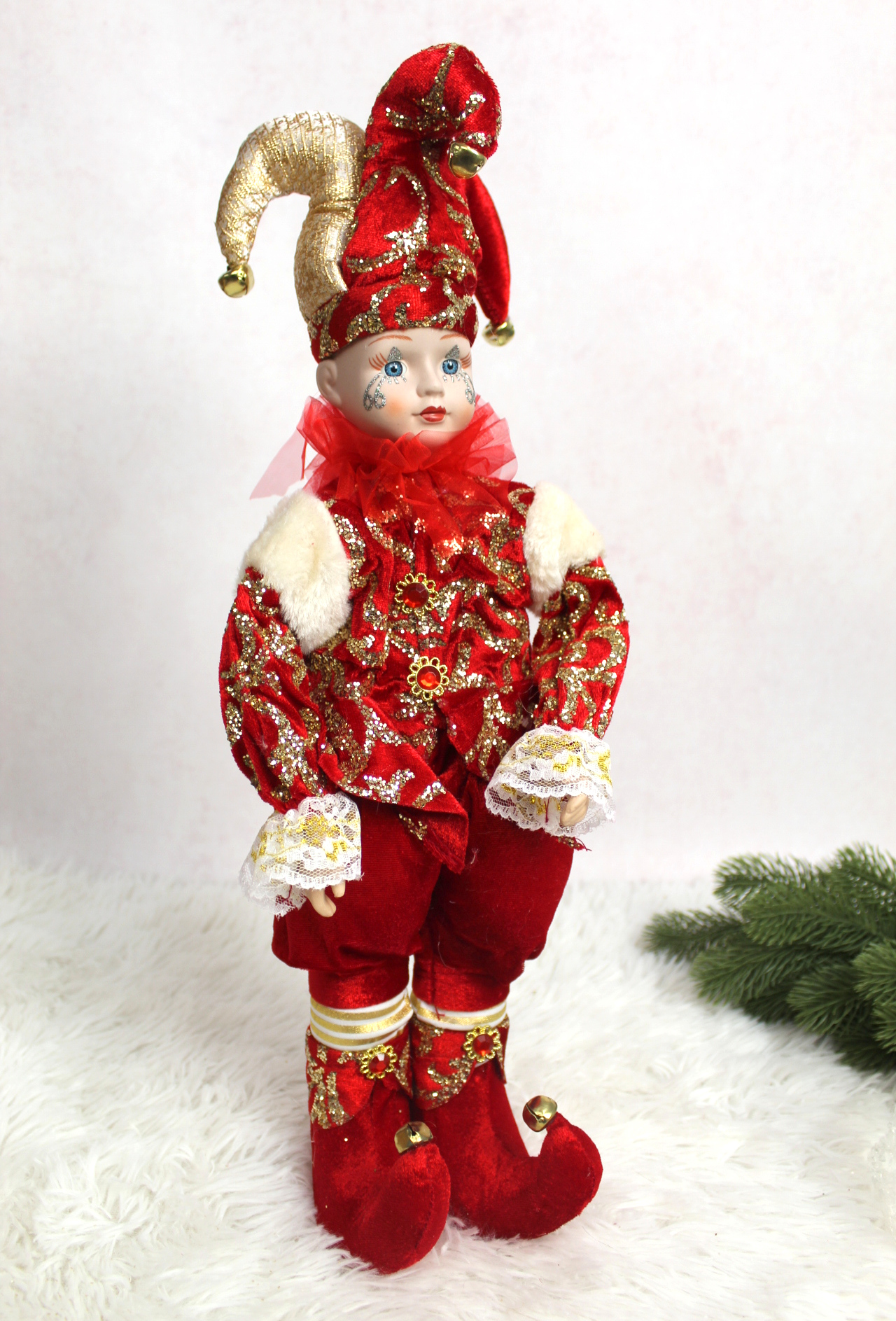 Figurka dekoracyjna nakręcana z melodią BŁAZEN 50 cm CZERWONO ZŁOTY