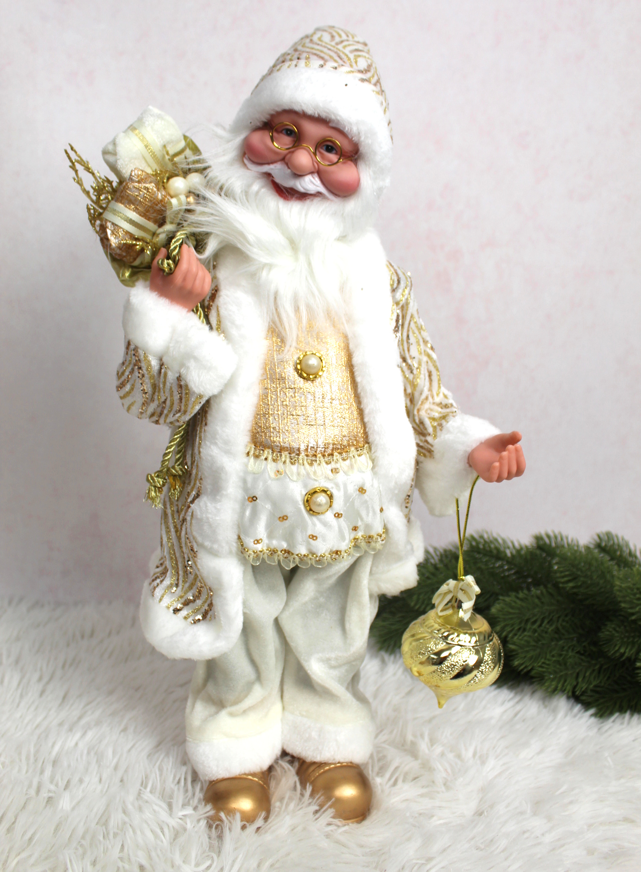Figurka dekoracyjna nakręcana z melodią MIKOŁAJ ruszający głową 50 cm BIAŁO ZŁOTY