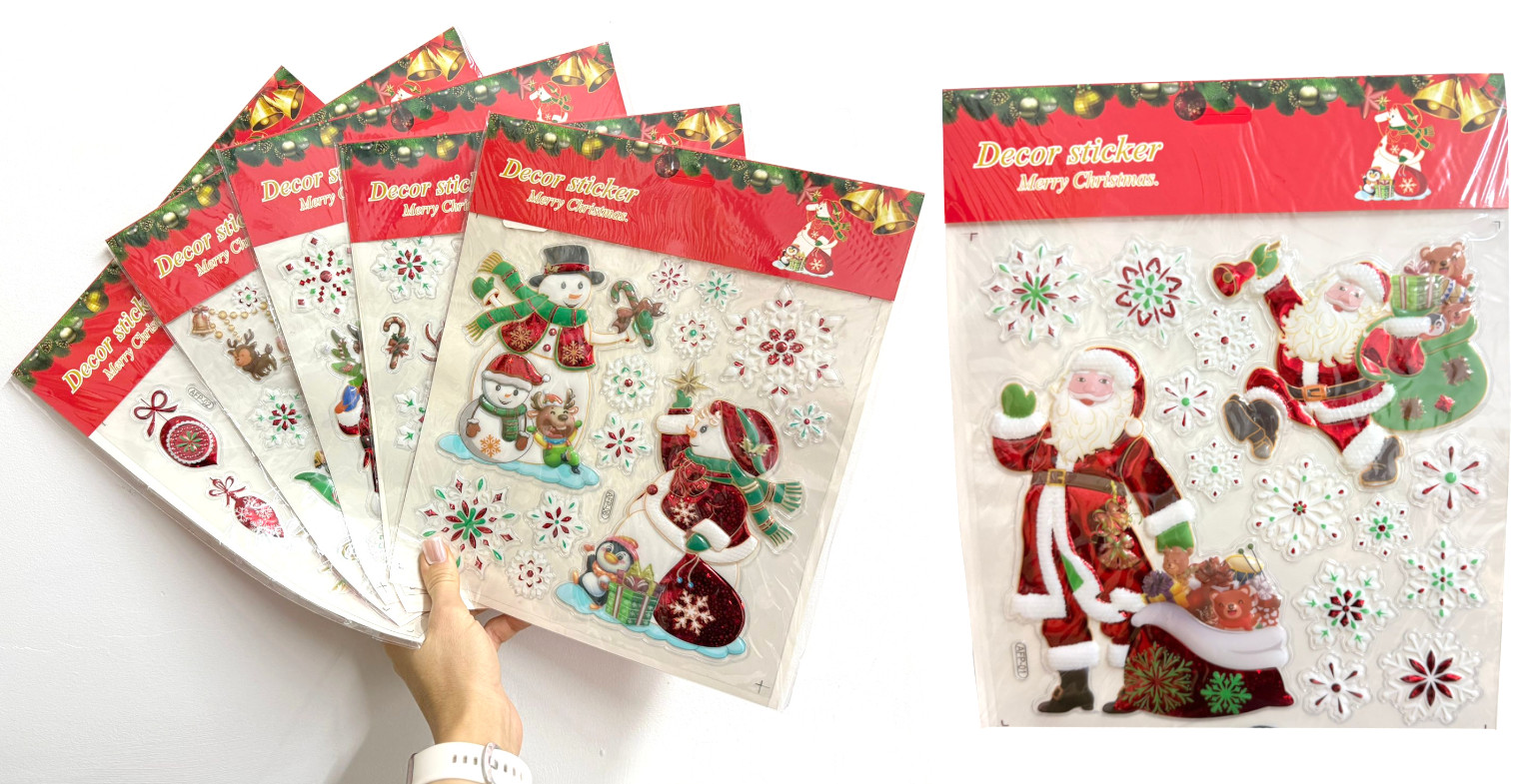 Naklejki ŚWIĄTECZNE puffy ok.16 cm na blistrze 21,5x16,5 cm - 1 szt