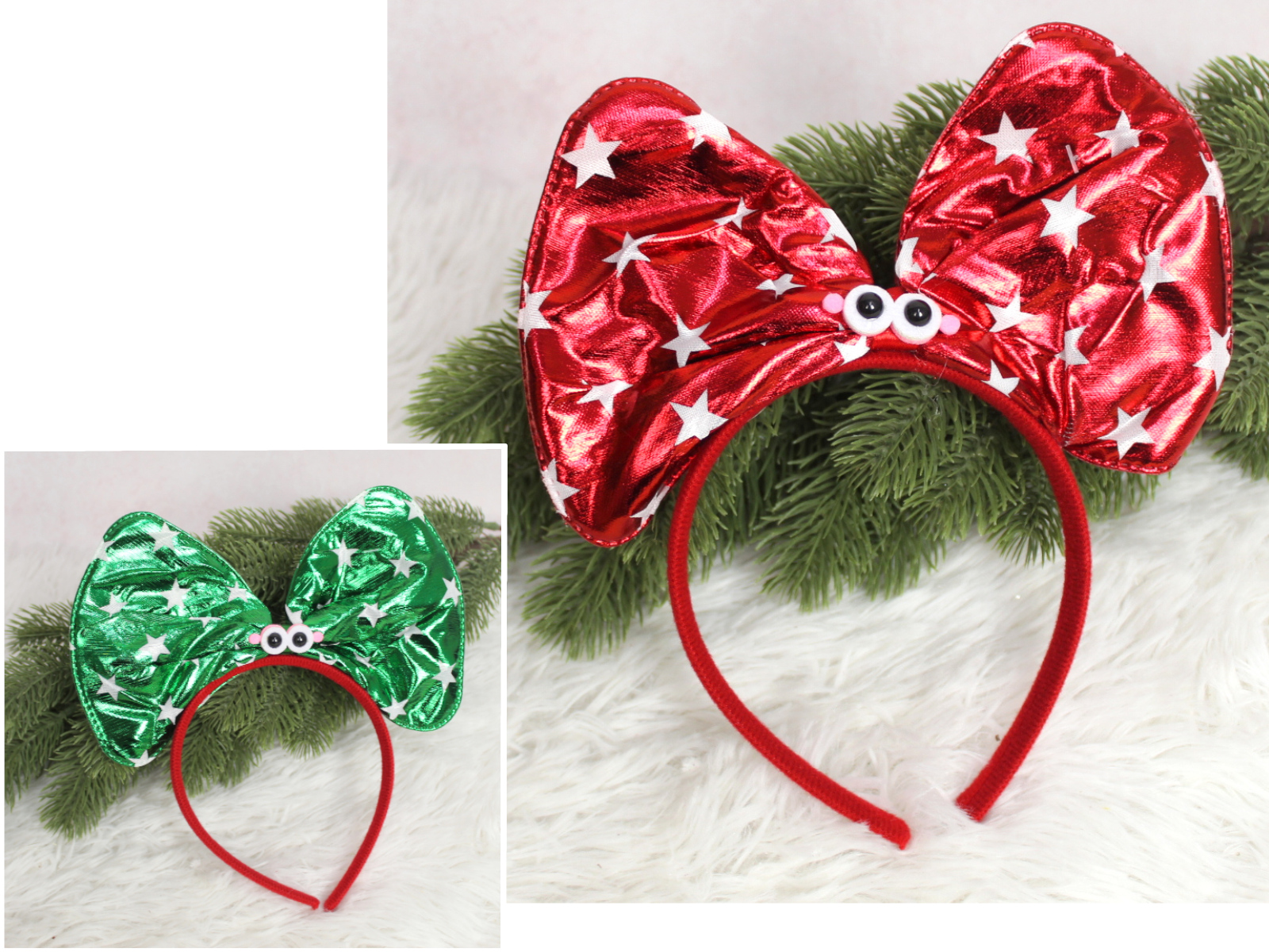 Opaska świąteczna na głowę KOKARDA w gwiazdki z oczami 23x21 cm MIX KOLOR - 1 szt