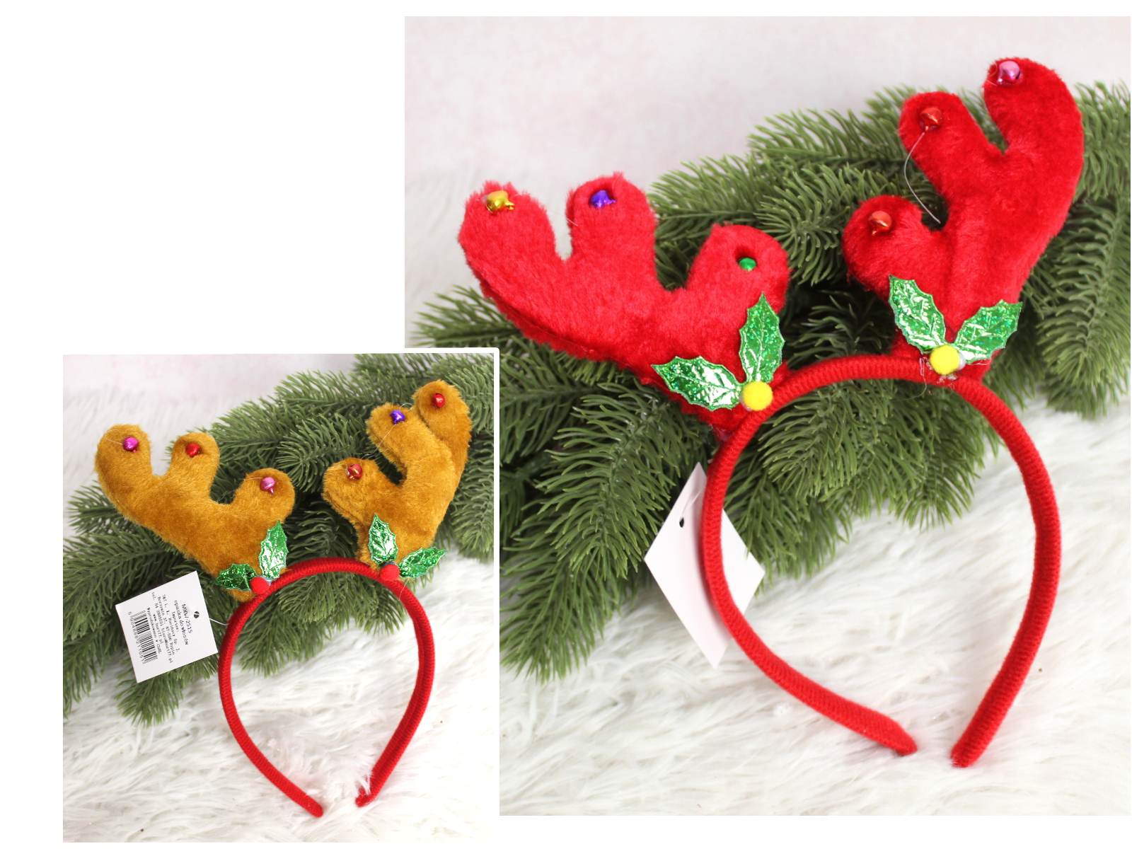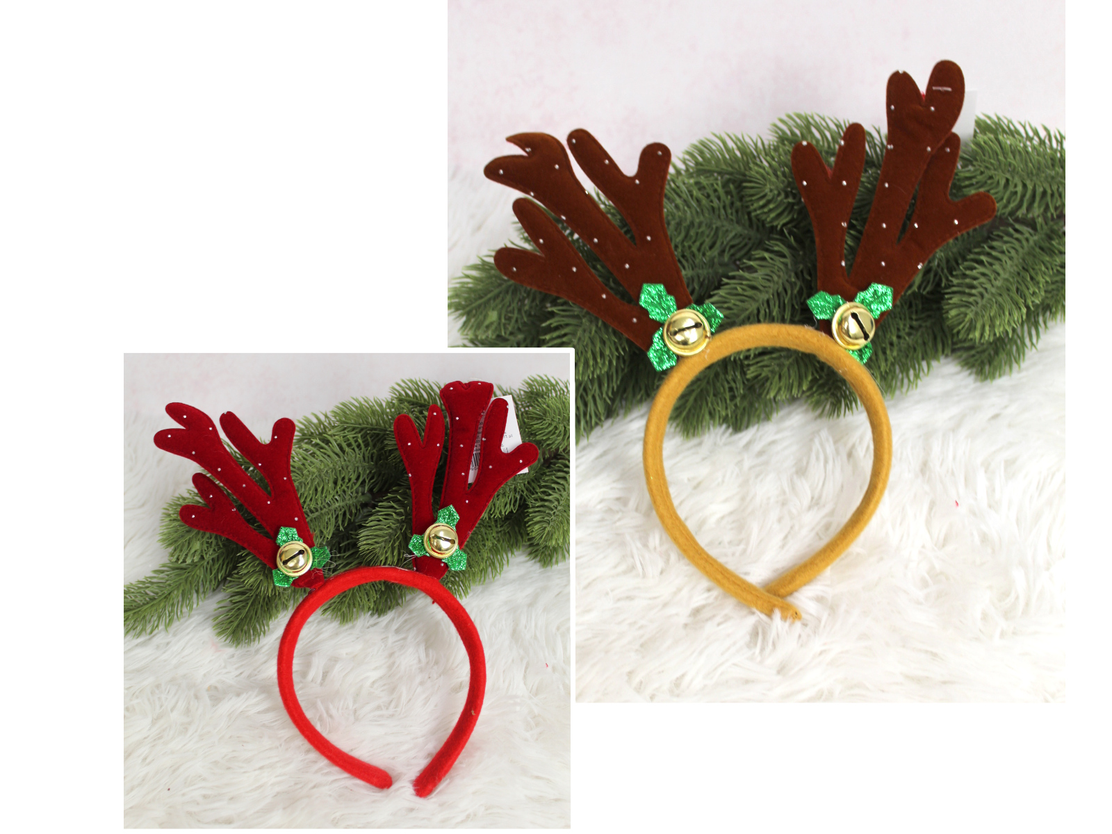 Opaska świąteczna na głowę ROGI RENIFERA z dzwoneczkami 23x20 cm MIX KOLOR - 1 szt
