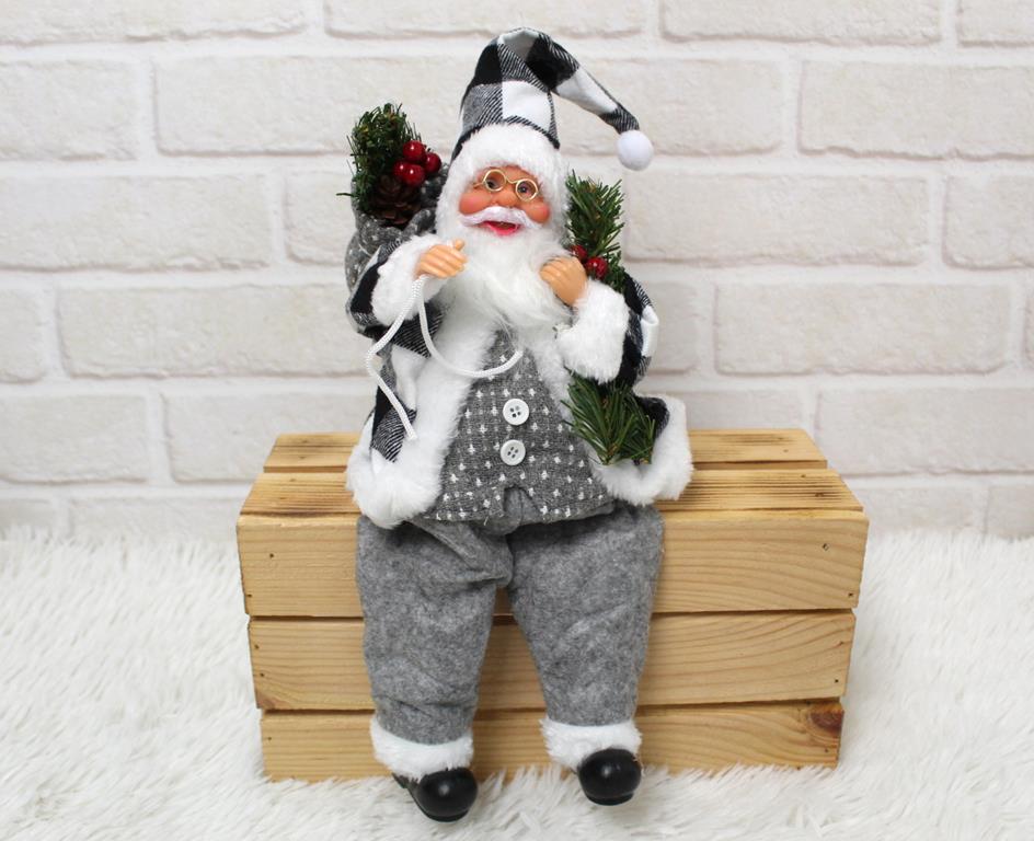 Dekoracja świąteczna MIKOŁAJ siedzący SREBRNO BIAŁY 38x15 cm