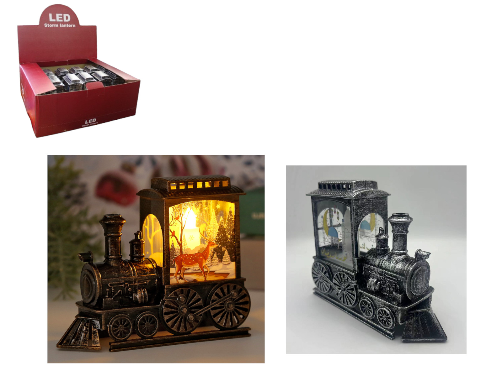 Lampion, latarenka świąteczna POCIĄG LED mix worów 14x10x5 cm MIEDZIANA, SREBRNA