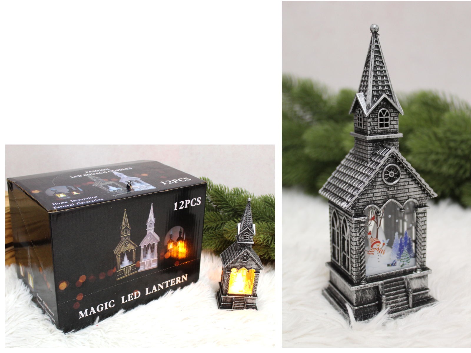 Lampion, latarenka świąteczna KOŚCIÓŁ LED 16,5x5,5 cm STARE SREBRO - 1 szt