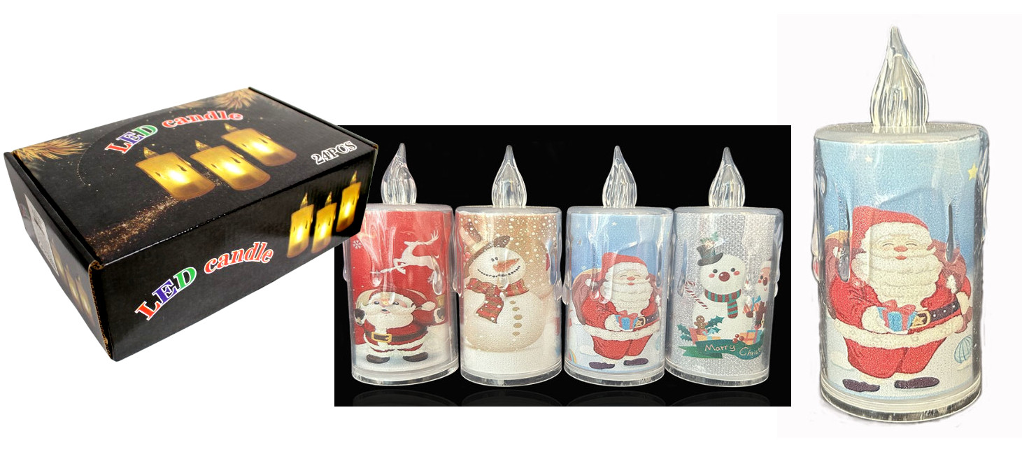 Świeca, świeczka LED na baterie świąteczna 8x3,5 cm MIX WZORÓW