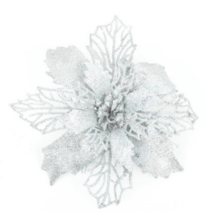 Kwiat sztuczny GWIAZDA BETLEJEMSKA - POINSECJA SREBRNA ok. 16 cm - 1 szt