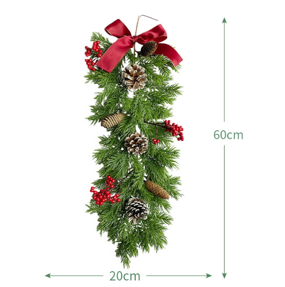 Ozdoba świąteczna, stroik, girlanda zwisająca SOSNA gumowa PE z szyszkami i czerwonymi kulkami 60x20 cm
