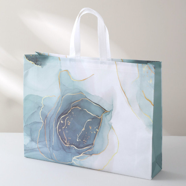 Torba na zakupy 47x36x10 cm BIAŁO NIEBIESKA tworzywo