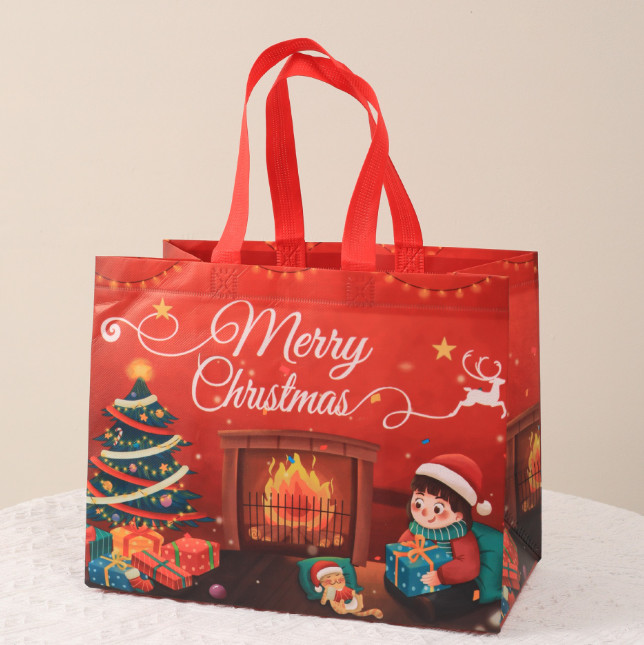 Torba na zakupy ŚWIĄTECZNA 32x25x17 cm CZERWONA tworzywo