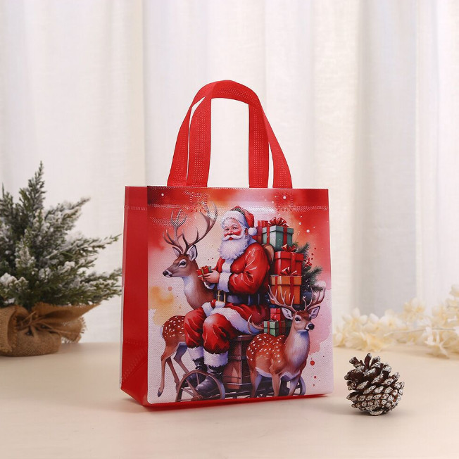 Torba prezentowa tworzywo świąteczna Mikołaj i renifery 36x32 cm tworzywo