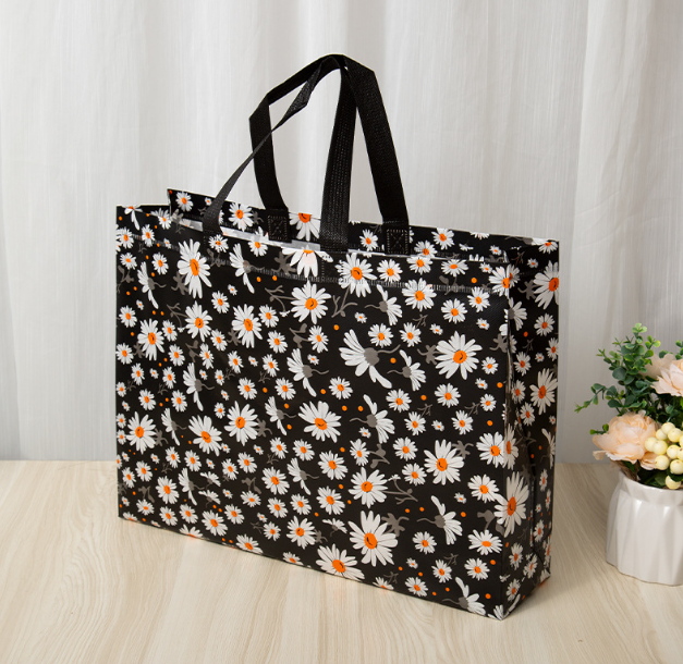 Torba zakupowa, na zakupy CIEMNOZIELONA W STOKROTKI tworzywo 45x35x10 cm