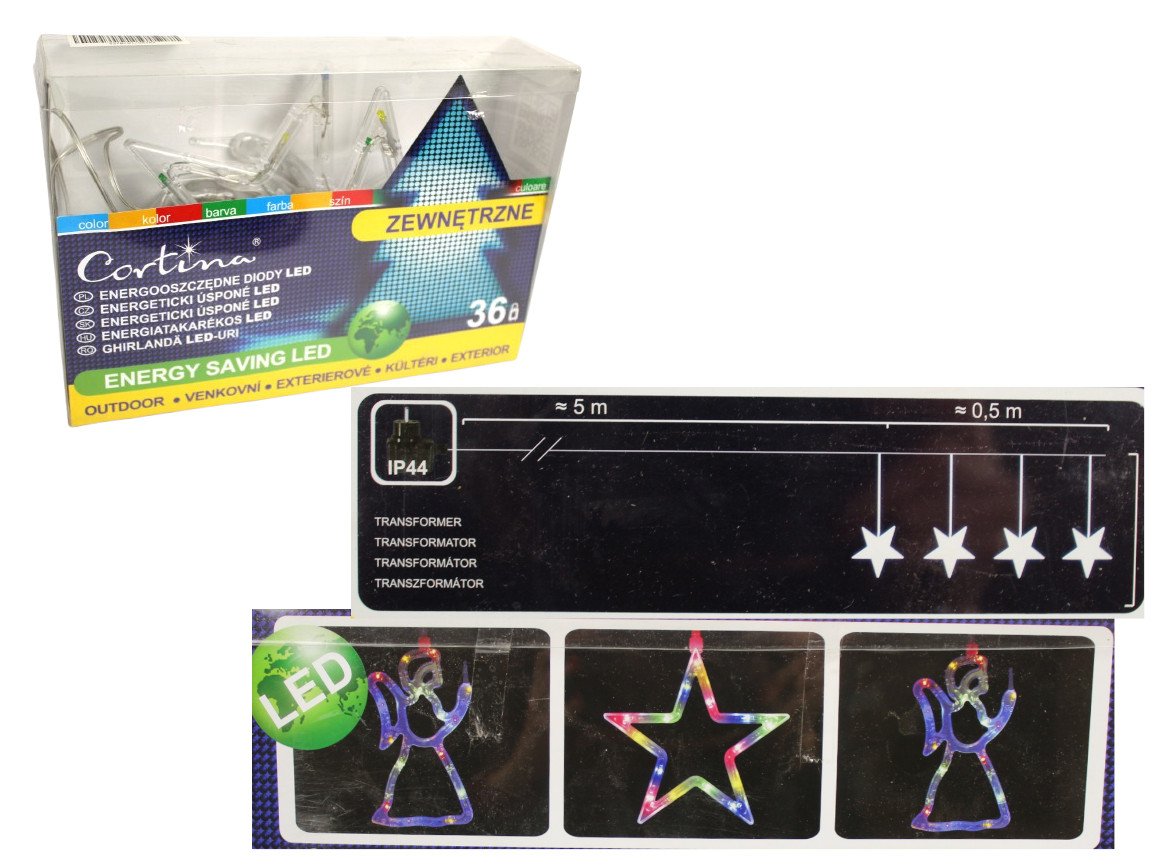 Lampki LED 36L sople KSZTAŁTY 5,5 m - MULTIKOLOR