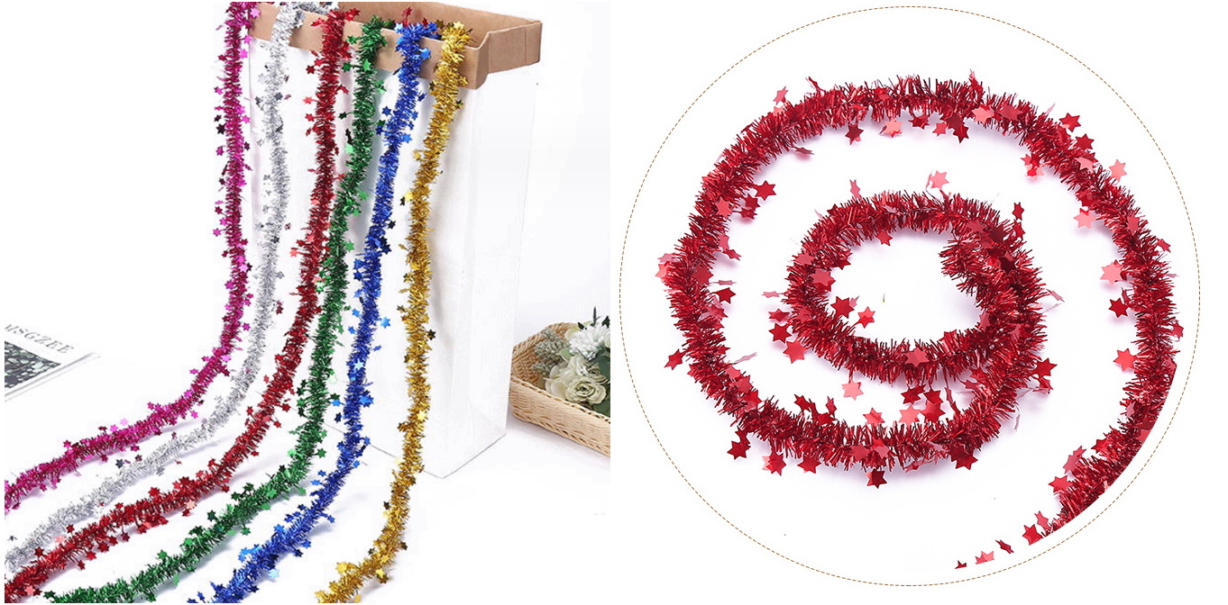 Łańcuch świąteczny GWIAZDKI 4 cm x 2 m MIX KOLOR