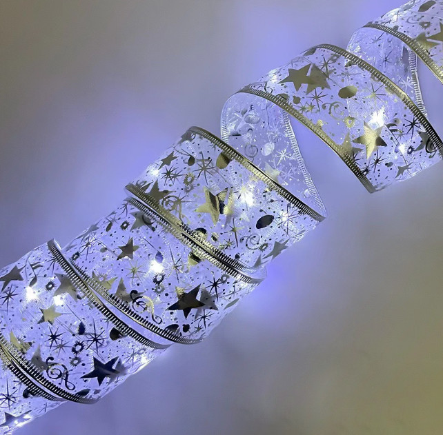 Łańcuch, wstążka LED świecąca SREBRNA 90 cm zimna biała