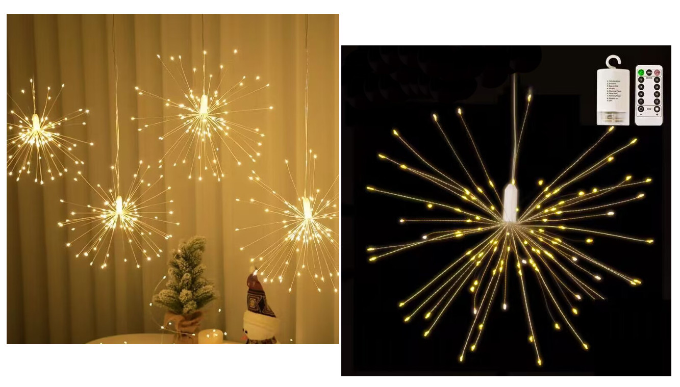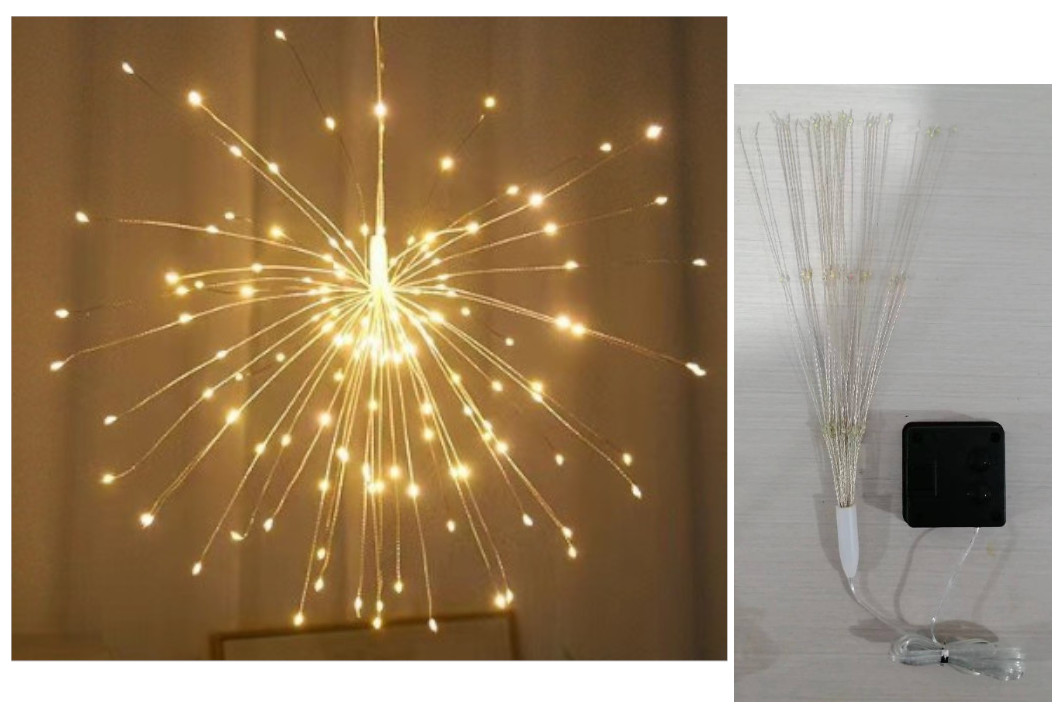 Dekoracja lampki na druciku 90 LED FAJERWERKI 30 cm BIAŁE CIEPŁE