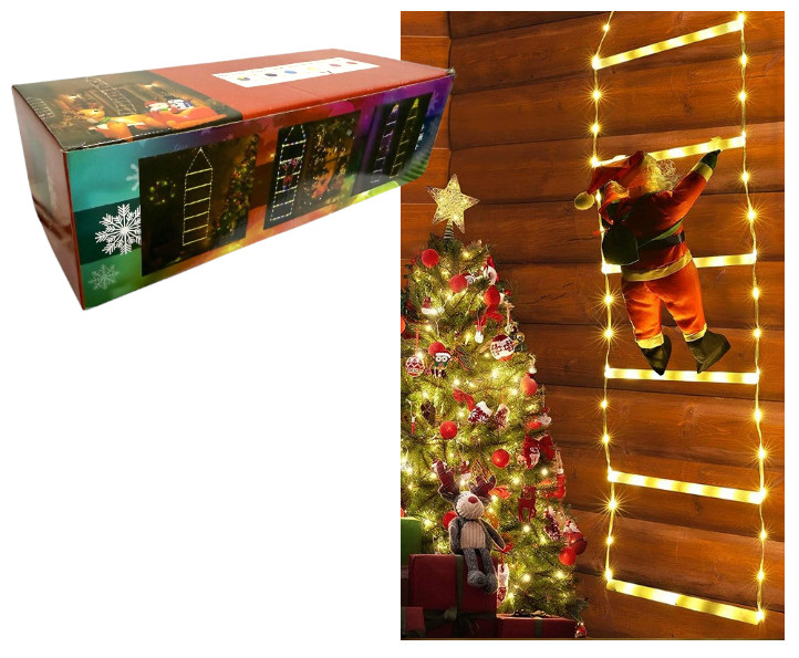 Dekoracja MIKOŁAJ na drabinie 120 cm biały ciepły