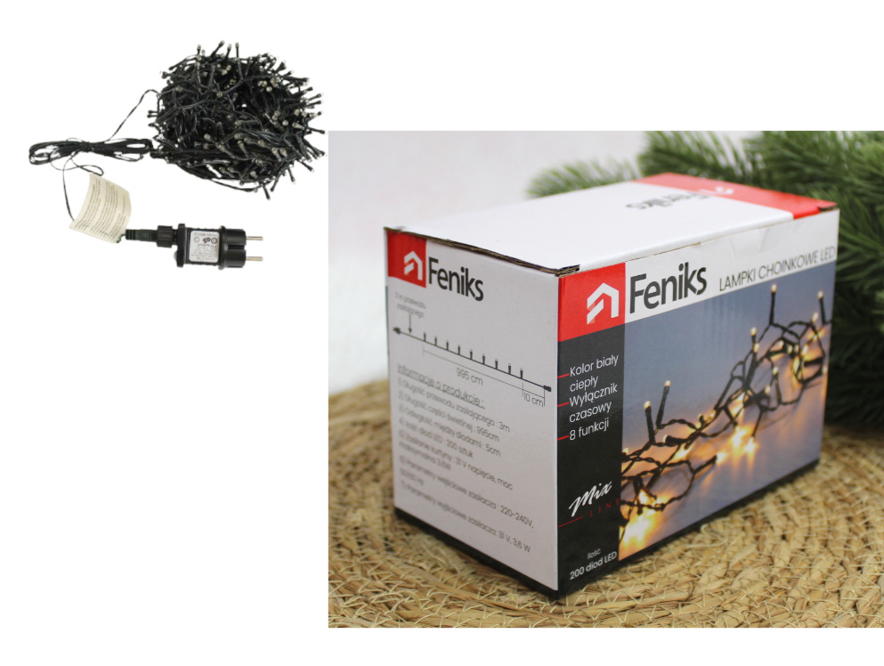 Lampki choinkowe do użytku wewnętrznego i zewnętrznego, energooszczędne z dodatkowym gniazdem.