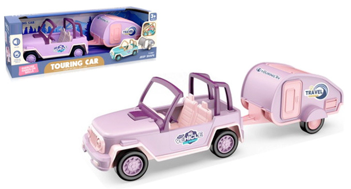 Auto dla lalek (dźwięk) z przyczepą w kartonie 40x13x12 cm