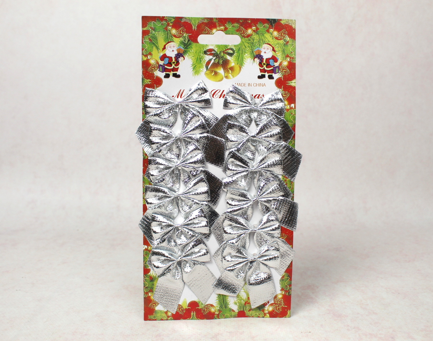 Kokarda dekoracyjna z tworzywa sztucznego 5,5x5,5 cm kpl. 12 szt SREBRNA