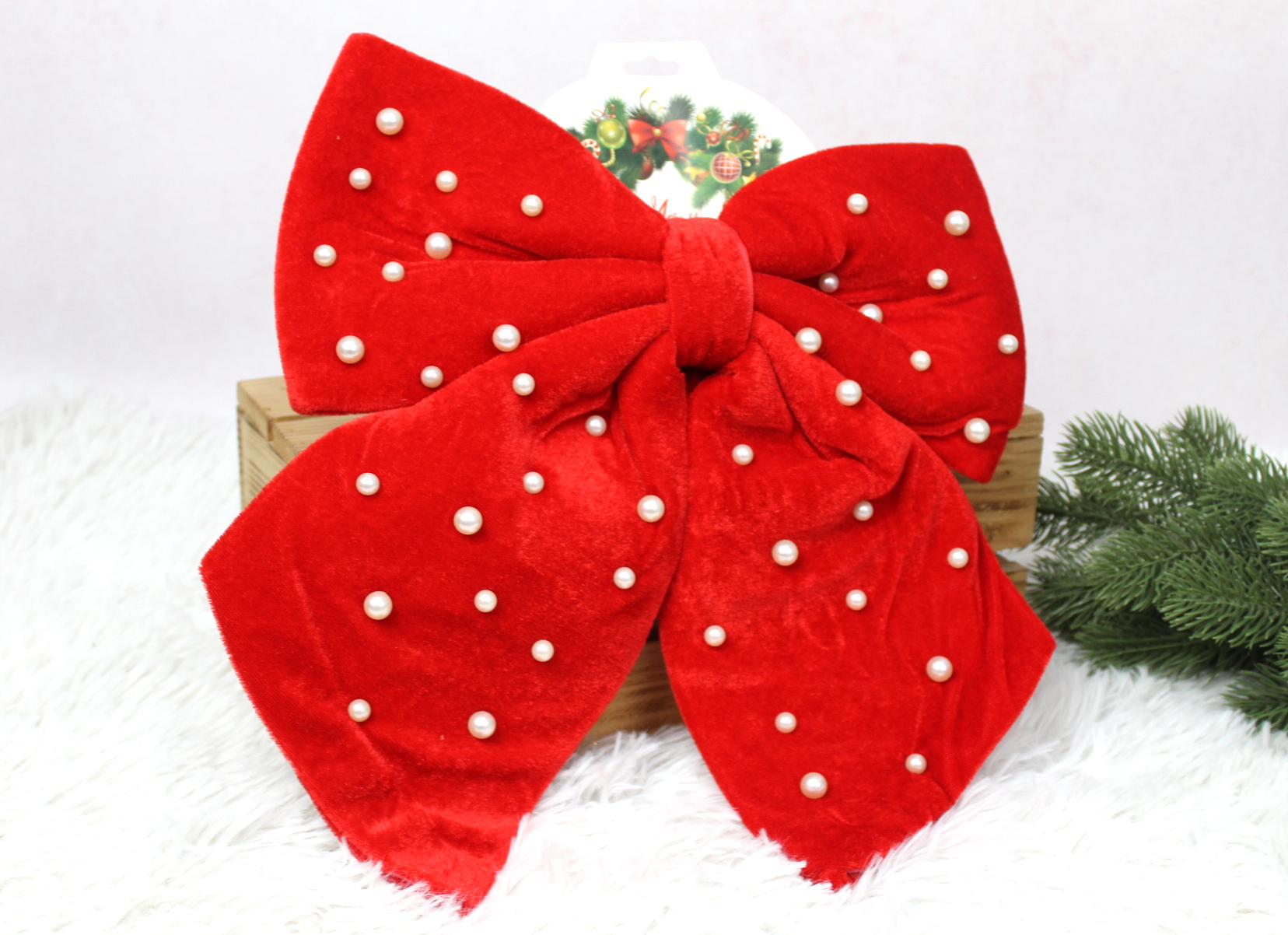 Zawieszka na choinkę KOKARDA welurowa z perełkami 35x30 cm CZERWONA