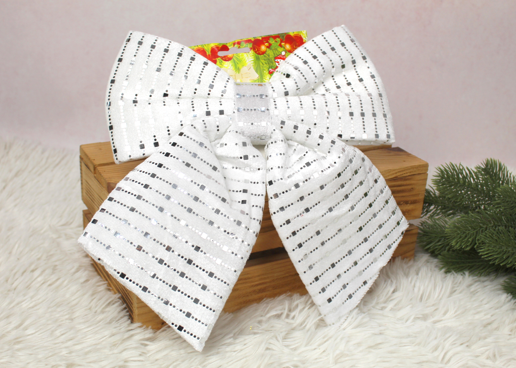 Zawieszka na choinkę KOKARDA welurowa z cekinami 28x25 cm SREBRNA