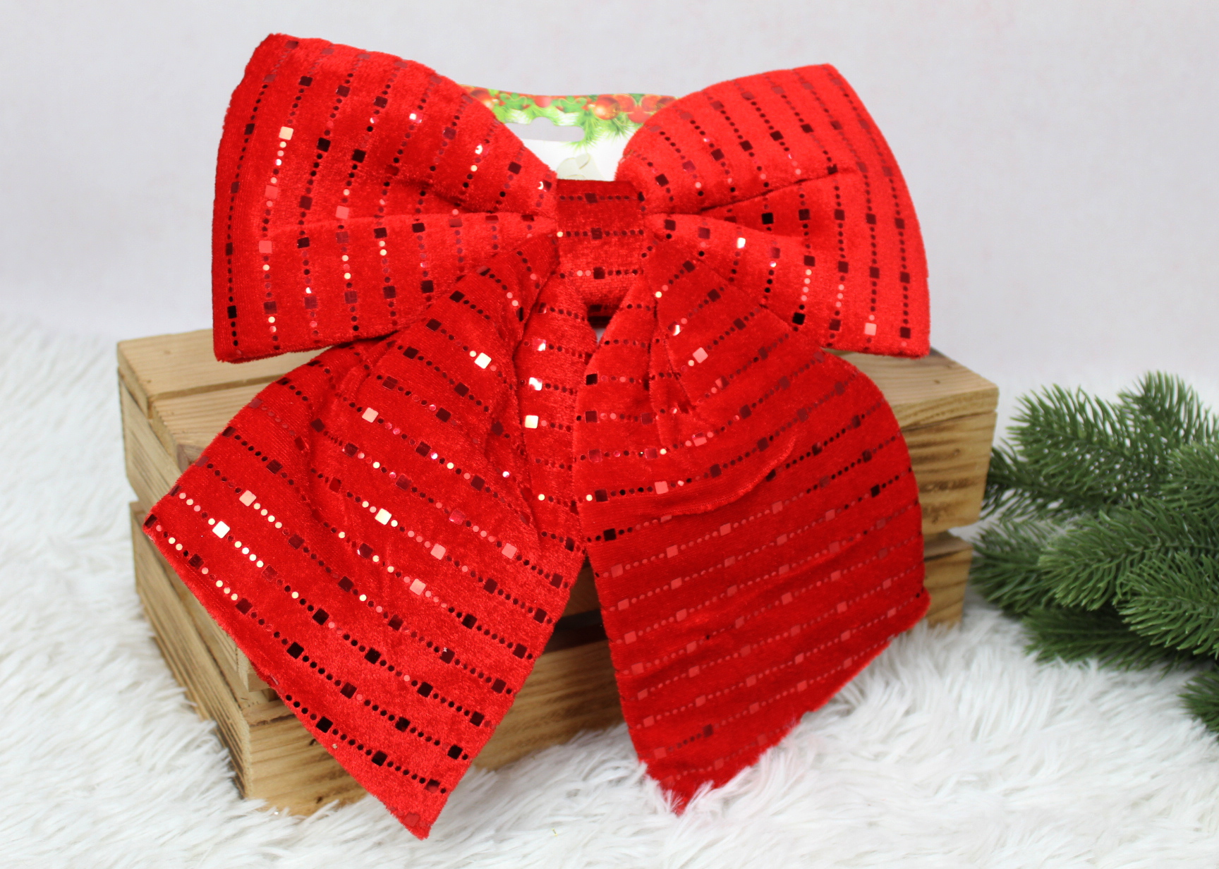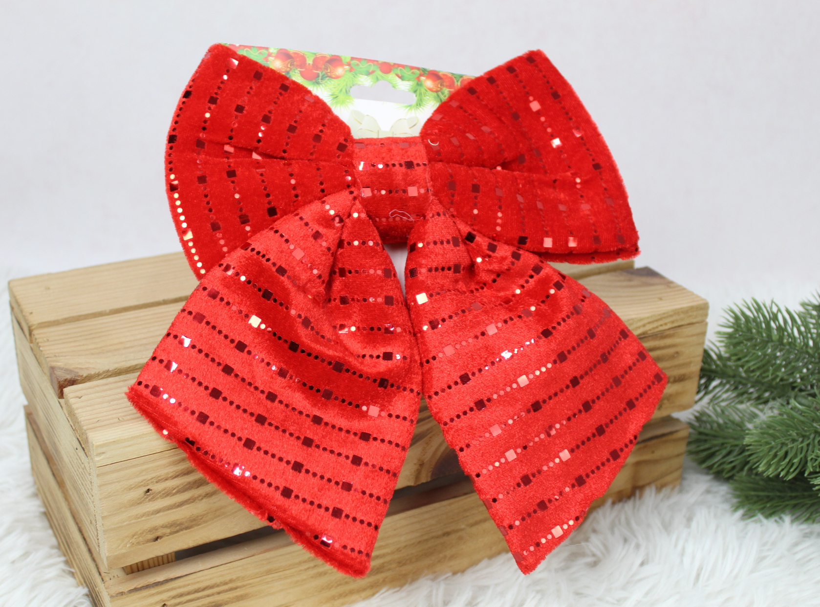 Zawieszka na choinkę KOKARDA welurowa z cekinami 28x25 cm CZERWONA