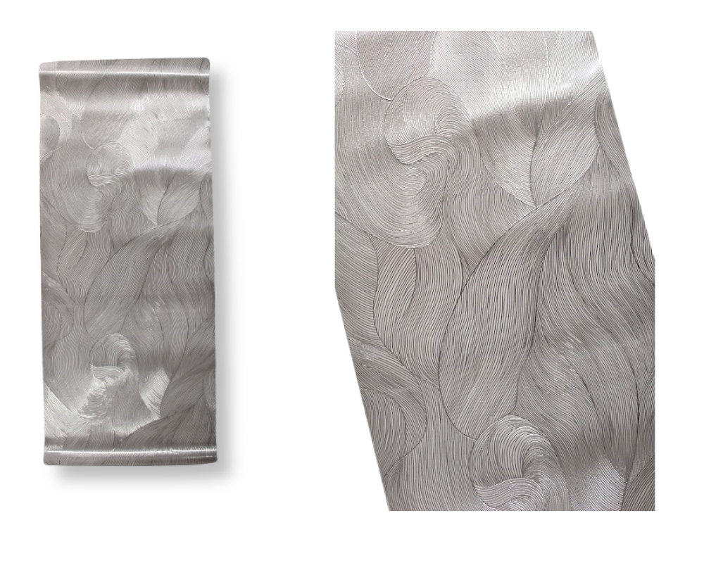 Podkładka na stół prostokątna z przezroczystą folią LIŚCIE 90x38 cm SREBRNA
